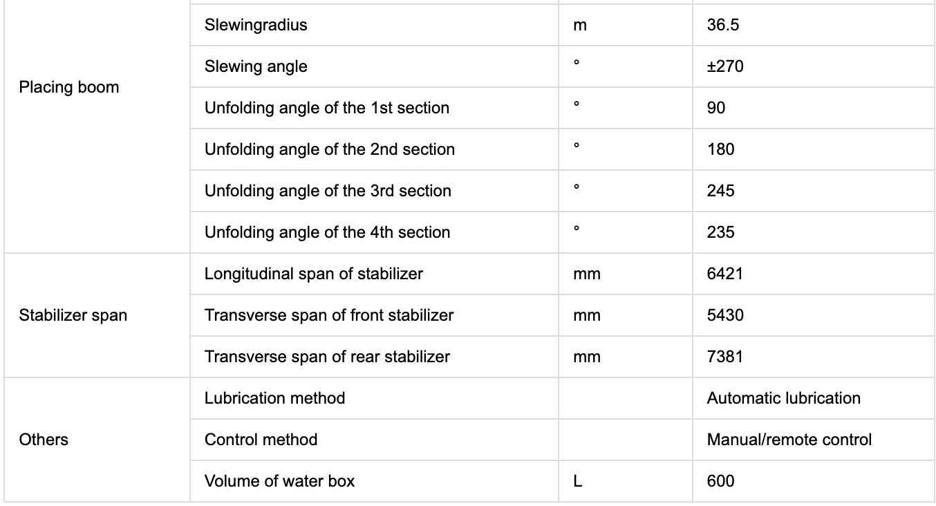 Многочисленные передовые технологии: грузовик Sany's Boom Pump интегрирует различные передовые технологии, такие как технология позиционирования с одним путем, технология интеллектуального снижения вибраций, технологии энергосбережения и технология управления вращением. Интеллектуальная технология уменьшения вибрации бума, интегрированная с технологией Putzmeister, эффективно снижает вибрацию стрелы во время накачки, с амплитудой снижена на 50%; Энергетическая технология, интегрированная с технологией Putzmeister, достигает 29 изменений в направлении в минуту (при системном давлении 12 МПа), повышая эффективность накачки на 25% и снижая расход топлива на 10%; Ротационная технология управления антипологами использует технологию ротационного торможения, снижая амплитуду ротационного поворота на 60%.
